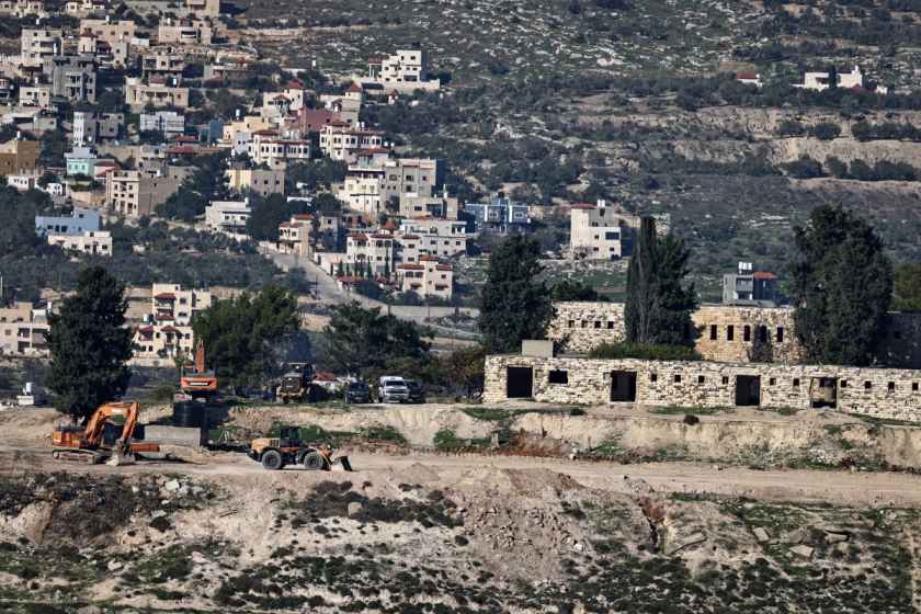 This picture shows earthmovers next to the deserted mosque in the settlement of Sa-Nur, south of Jenin, in the occupied West Bank on December 24, 2025.